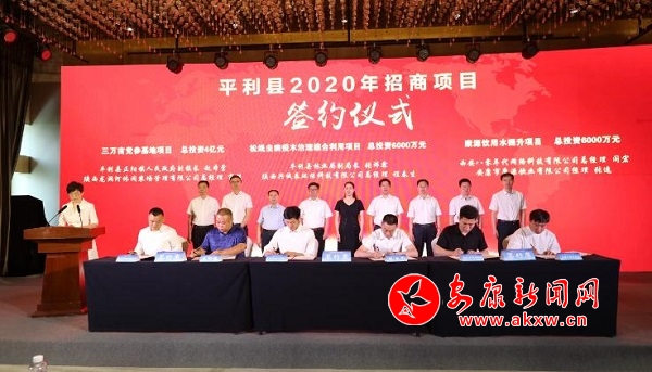 本網訊(通訊員 李世鋒 陳力)6月7日,由中共平利縣委、平利縣人民政府主辦,平利縣招商服務中心承辦的平利縣2020年招商項目簽約儀式在古城西安舉行。