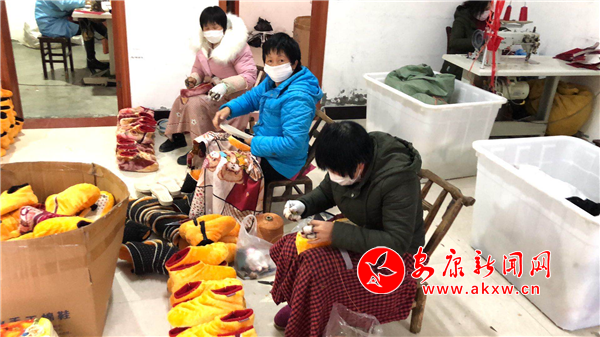 棉布鞋制作工藝簡單易學,社區工廠離家近,既能工作又能照顧老人與小孩,對于當地留守婦女而言這是一份不錯的工作,王端江的招工難題就這么解決了。王端江在產品制作過程中毫不馬虎,產品選料考究、縫制精細,價格也很實惠,因此王端江制作的棉布鞋迅速贏得了顧客的青睞,原來他經營的小廠房也很快發展成帶動農村閑散勞力就業的大工廠。隨著銷量逐年增加,棉布鞋市場也逐步擴大,由起初的周邊市縣,拓展到湖北、甘肅、湖南等地。王端江的社區工廠依托發展棉布鞋小產業,常年帶動70余名群眾務工就業,務工人員月均工資超過2000元。