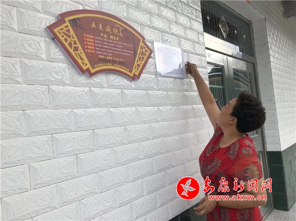 四組宋立琴一大早就拿著大掃帚清掃院落,潔凈的玻璃窗倒映著笑臉,與大門上懸掛著的“五美庭院”相得益彰。環顧四周,宋立琴周邊農戶都懸掛著同樣的“五美庭院”標識。9B3安康新聞網