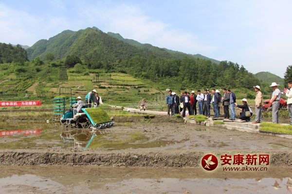 安康新網訊 (通訊員 孫鵬)5月13日,平利縣洛河鎮安壩村的稻田里,人們圍著兩個“鐵疙瘩”議論紛紛,原來這是平利縣農機管理中心聯合平利縣盛豐農機專業服務合作……