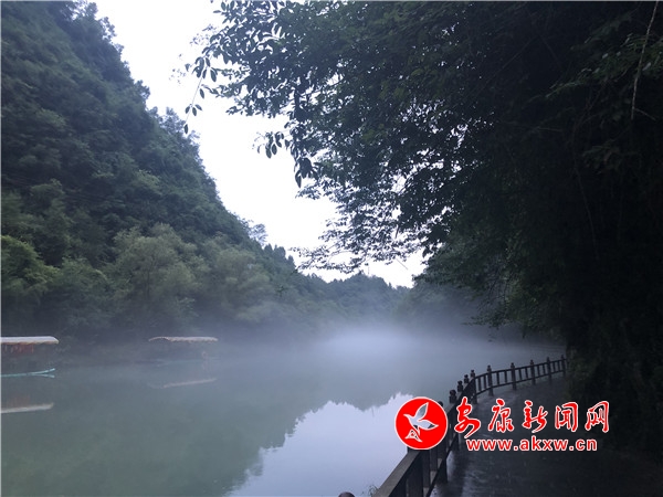 “山歌王子”袁開銀在竹筏上為來訪游客擂鼓助興唱山歌,悠長的歌聲獲得接連喝彩,讓游客耳畔一亮的歌聲也成為助推旅游興旺的有力臂膀之一。