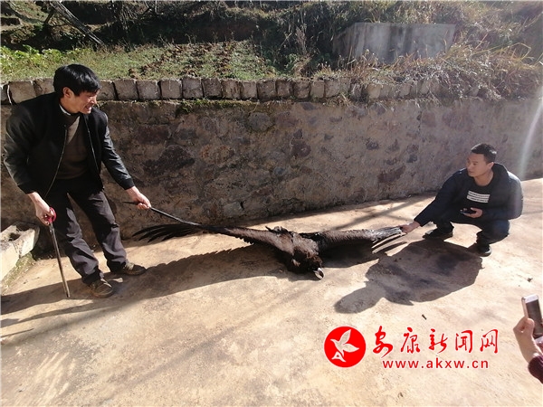 當日中午,工作隊員在村內發現一只疑似受傷跌落的“大鳥”,隊員隨即與鎮農業綜合服務站和縣林業部門取得聯系。經工作人員初步鑒定,該鳥為禿鷲,屬國家二級保護動物。因在本地較為稀有,加之此鳥已無法獨立活動,工作人員將其帶回了林業部門做進一步檢查,待康復后,將把它放歸山林。