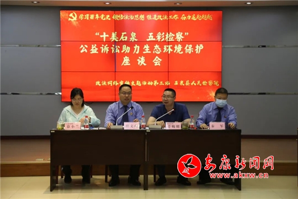 活動現場,采訪團通過聽取介紹、觀看展板和公益訴訟宣傳片,了解了近年來石泉縣人民檢察院致力于守護“青山、綠水、藍天、黃土、紅色旅游資源”等公益訴訟相關領域上的創新舉措和取得的成效。座談會上,石泉縣人民檢察院黨組書記、檢察長程文亮對與會人員的到來表示歡迎并就現階段公益訴訟工作情況作了簡單介紹。第二檢察部副主任呂松對石泉縣人民檢察院公益訴訟“十美石泉、五彩檢察”工作進行了詳細匯報,并對采訪團就重點辦理推進漢江水體生態保護、“散亂污”企業綜合治理、縣域土地資源保護等方面的具體案例進行了深入講解。會后,采訪團對補植復綠工作進行了實地走訪。大家紛紛表示,將認真歸納整理石泉縣人民檢察院的特色亮點工作和先進典型事跡,深入挖掘好故事,用心描寫創新點,努力傳播正能量,充分展示檢察機關的良好形象,讓人民群眾更好地了解和支持檢察工作,讓石檢好聲音和法治“正能量”走出“法律圈”融入百姓“朋友圈”。