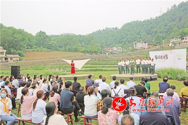 開幕式上,著名朗誦藝術(shù)家海茵與石泉干部群眾一起朗誦了由陜西著名詩人商子秦專門為“秦嶺藝術(shù)季·夏至石泉”活動創(chuàng)作的詩作《我愛我的家鄉(xiāng)》,當?shù)馗枋趾蛯W生先后演唱了歌曲《星辰大海》《家鄉(xiāng)美》《田野里的歌聲》,表演了舞蹈《朱鹮舞——長江之戀》等,展現(xiàn)了“詩意的秦嶺,友好的石泉”獨特的生態(tài)風貌和民俗文化,贏得了嘉賓和村民的陣陣掌聲,也為希望的田野吹進了新時代藝術(shù)的新風。