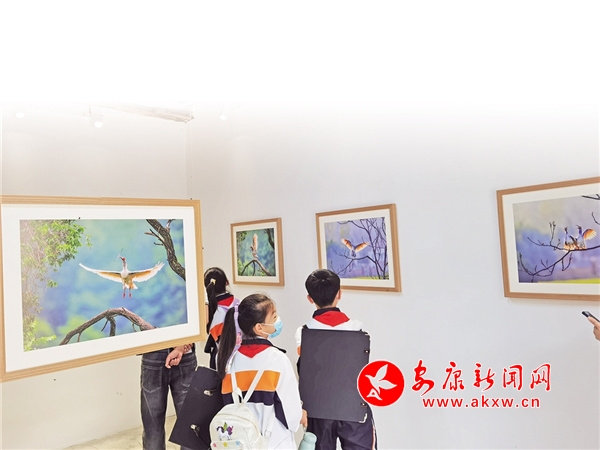 學生觀看朱鹮攝影展