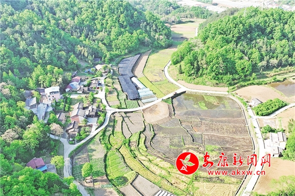航拍石泉縣城關(guān)鎮(zhèn)絲銀壩村草池灣田園風光
