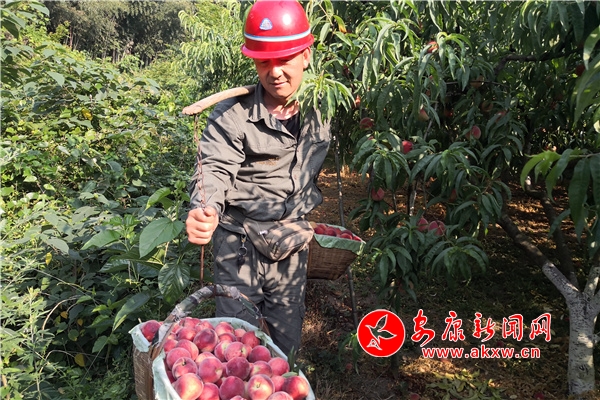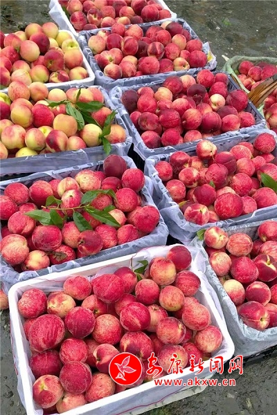 產(chǎn)業(yè)大戶許國棟的果園里栽種有蜜桃、黃桃、油桃、蟠桃、冬桃等七八個品種桃樹。蜜桃和黃桃現(xiàn)已大量上市。果園里工人們正加緊采收桃子,分揀裝框,一部分運往附近超市,一部分通過網(wǎng)絡(luò)訂單發(fā)往全國各地。高峰時期,許國棟果園一天售出的桃子達4000余斤。