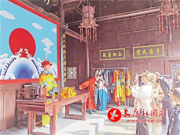 每到周末或節假日,石泉縣秦巴老街的古縣衙人頭攢動,走近一看,原來大家是在觀看情景劇“縣令審案”。“在古街上演情景劇,這種形式非常好,生動有趣,感覺自己穿越到了古代,特別有氛圍感。”安康市民王樂趁著周末,約上朋友一起到石泉老街游玩。