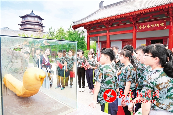 由三個村合并而成的池河鎮(zhèn)明星村,擁有6000多畝桑園,通過經(jīng)濟合作、村民入股方式成立旅游公司,依托蠶桑產(chǎn)業(yè)和蠶桑文化,成功打造“滄海桑田”景區(qū),實現(xiàn)了“桑園變景點、民居變民宿、農(nóng)民變股民”的蛻變。養(yǎng)蠶時節(jié),許多學(xué)生都會來到明星村研學(xué)旅行,了解鎏金銅蠶故事,體驗摘桑養(yǎng)蠶。