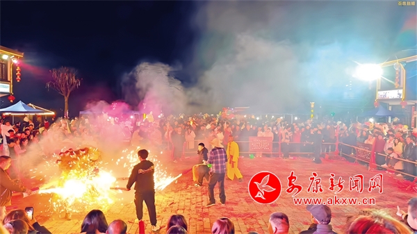 池河鎮(zhèn)系列非遺民俗活動(dòng)從大年三十開始,一直持續(xù)到正月十五,每晚在明星村醉美桑海景區(qū)游客中心舉行,其中以燒獅子最為熱鬧。燒獅子的花筒簡稱花,“花”與“發(fā)”諧音,獅子“要花”即是“要發(fā)”的意思。合著樂隊(duì)鑼、鼓、鈸三大件樂聲大起,獅子搖頭擺尾舞動(dòng),煙花爆竹交融,騰挪跳躍,越舞越猛,真可謂“金花四射神獅舞,電閃雷鳴映長空”。LQZ安康新聞網(wǎng)