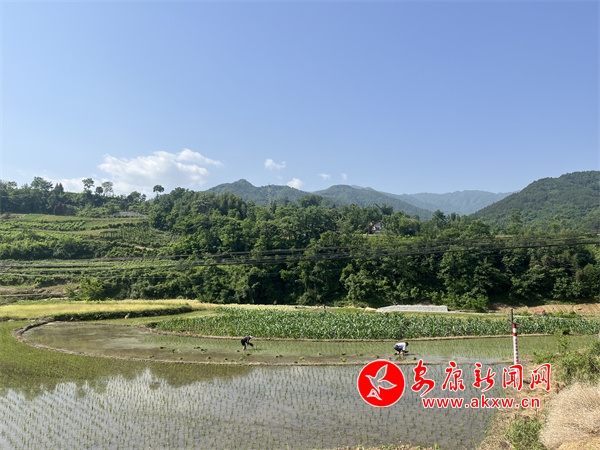 5月11日,在池河鎮良田村,只見一丘丘水田像一面面鏡子,在明媚的陽光下泛起耀眼的光芒。因水田田塊小,不利于機械化耕作,為不讓一塊田撂荒,村民們趁著晴好天氣采用人工插秧,確保糧食穩產增收。Aib安康新聞網