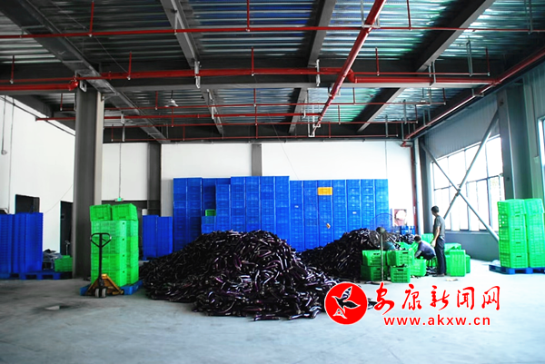 圖為豐產(chǎn)期的紫皮長(zhǎng)茄被堆放在倉儲(chǔ)車間