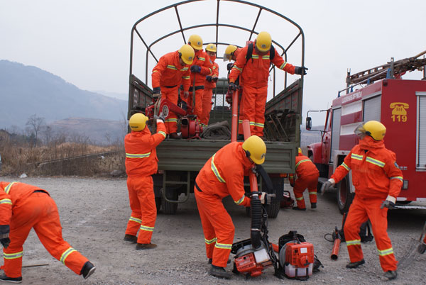 接到火情報告,撲火隊員迅速登上演練車輛 撲火隊員各持滅火器具趕赴火場安康新聞網訊(通訊員 宋世兵)1月27日,石泉縣森林防火指揮部組織林業、消防等60余名撲火……