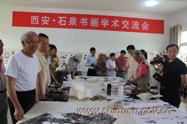 6月20日,西安市書畫藝術研究院的著名書畫家蔡嘉礪、景德慶、張冠福、王振民、武儒昌、南云川、蔣永明、李延等一行二十人,同石泉的王開明、李昌玉等書畫家門聚……