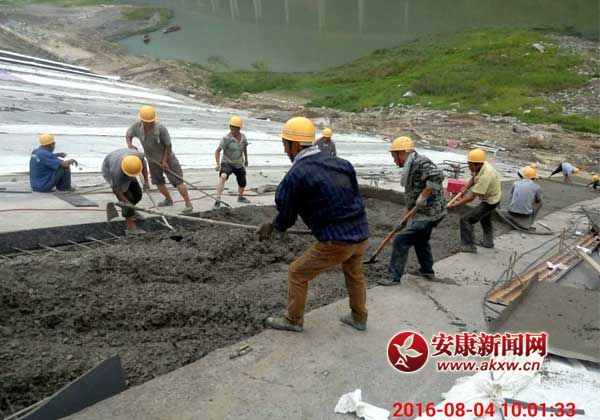 與洪水搶時間,連續高溫天氣,建設工地上更是一派繁忙景象,工人頭頂烈日,腳踏燙土,晝夜輪班施工。暈倒在工地的施工隊長梁金元被工人用涼水緊急施救,緩過勁爬起來繼續組織大伙施工。副總工程師水小剛一馬當先,帶頭工作,不但攻克了水泥面板施工中的技術難題,更以特別能吃苦的精神為大家樹立了榜樣。天大旱,人大干,工地上處處閃現著拼搏的場景,比進度,賽質量,建設者們用滾燙的汗水描繪出了一幅感人的勞動競賽畫面。2dL安康新聞網