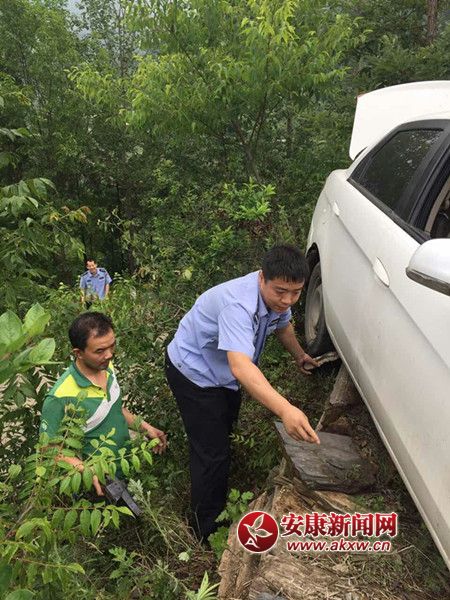 新手司機開車緊張致車掉下路沿 警民合力將車抬起