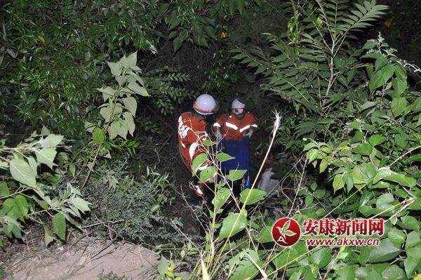 摩托車失控三人墜崖 旬陽消防緊急救援