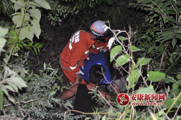摩托車失控三人墜崖 旬陽消防緊急救援
