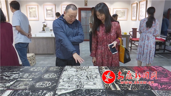 走進展廳,各具特色、創意新穎的黑白木刻版畫作品整齊陳列,《老城印象》、《黑山戰役》、《疫情防控》等等各類題材的版畫作品以一草一木,一山一石,一景一物,對時代主題、紅色經典、鄉土文化作出了藝術創作者獨到的詮釋,吸引了眾多參觀者駐足觀看,互相交流感受體會。