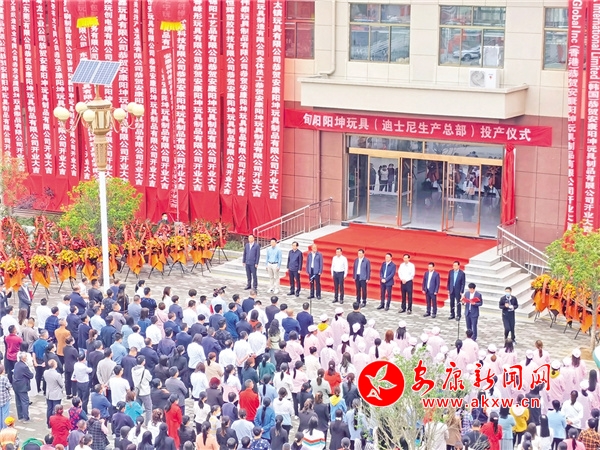 2022年5月10日,旬陽陽坤玩具(迪士尼玩具生產(chǎn)總部)投產(chǎn)儀式在蜀河新區(qū)舉行,項(xiàng)目年產(chǎn)1000萬件,于今年2月10日簽訂招商協(xié)議,僅用90天時(shí)間就完成了廠房裝修、設(shè)備安裝、員工招聘等工作。