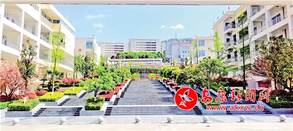 旬陽市職業中等專業學校勵志路春景。5KA安康新聞網
