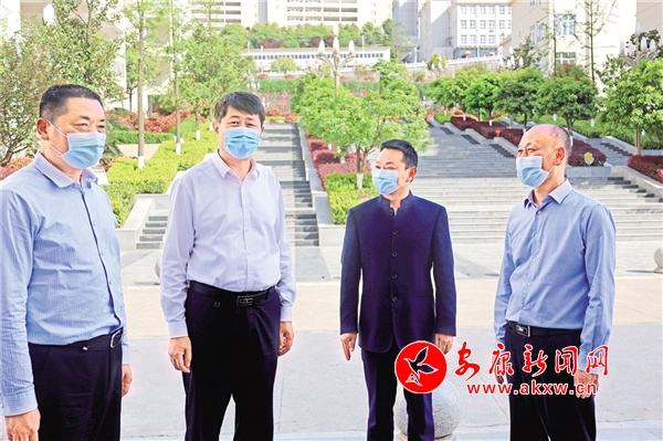 安康市委副書記、政法委書記范永斌(左二),旬陽市委書記陳紅星(左一)到旬陽市職教中心檢查指導工作。5KA安康新聞網