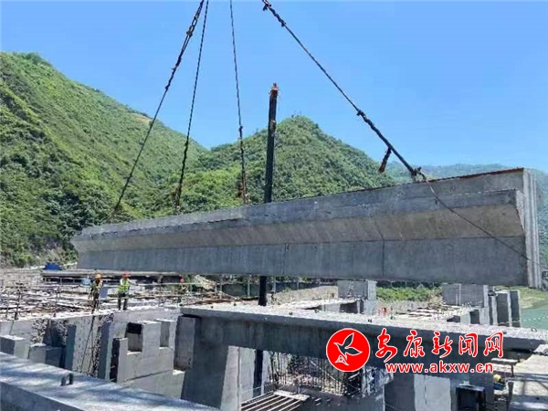 本網訊(通訊員 王建華 陳潔)2022年6月14日20時51分,隨著旬陽水電站大壩標七號孔最后一榀交通梁吊裝到位,右岸壩頂交通梁全部架設完成,標志著旬陽水電站全長462米的大壩實現了全線貫通。