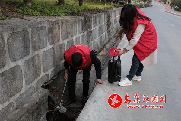 陽春三月,微風(fēng)不燥,太極城森林公園里的桃花灼灼開滿園,引得不少市民前來打卡的。不遠(yuǎn)處,一群“志愿紅”三三兩兩結(jié)伴而行,不時(shí)穿梭在公園的林間小路和灌木草叢中。只見他們一手提著垃圾袋一手捏著垃圾夾,佝僂著腰仔細(xì)搜尋著紙張、煙頭、塑料袋等,這些看似不起眼的小東西,卻直接影響著公園的衛(wèi)生和美觀。大家也不嫌臟,有的干脆直接跳進(jìn)路邊的排水渠清理垃圾。在經(jīng)過一番環(huán)境整治后,林間小道、草坪深處已不見塑料袋、果皮紙屑的蹤影,公園的地面也變得更加干凈整潔。