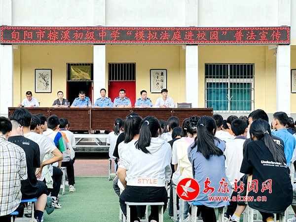 本網(wǎng)訊(通訊員 唐鬲)4月19日,隨著一聲清脆的法槌聲響起,一起以侵害健康權(quán)和名譽(yù)權(quán)案為藍(lán)本的模擬法庭審理在旬陽市棕溪初級中學(xué)操場正式開始。13名學(xué)生分別扮演審判長、人民陪審員、書記員等角色,從宣讀法庭紀(jì)律、被告人到庭,辯護(hù)人進(jìn)行辯護(hù)、證人出庭作證、合議庭合議、宣讀判決......讓師生們感受法庭審理案件的流程,讓大家對我國民事審判制度有更直觀地了解,對司法權(quán)威有更貼切的認(rèn)識(shí)。