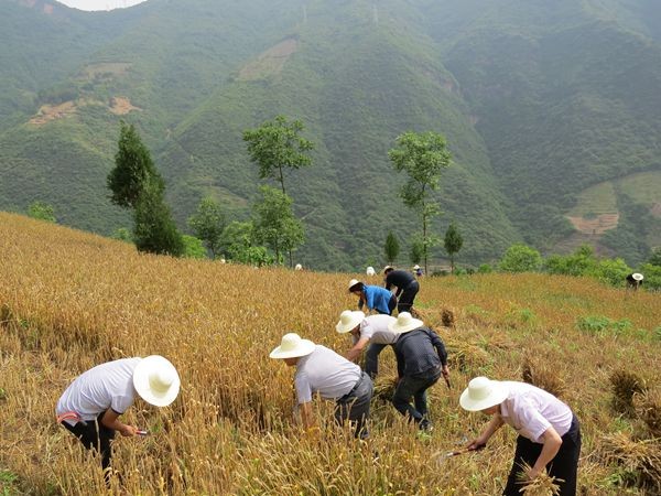5月21日,旬陽(yáng)縣政協(xié)主席王惠帶領(lǐng)政協(xié)機(jī)關(guān)干部職工下鄉(xiāng)幫助農(nóng)民收割小麥。趙灣鎮(zhèn)帽頂村村民周登富家里今年種著3畝多小麥,2畝多油菜。雖然家里有5口人,但是兒子……