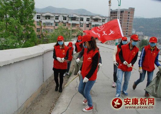 安康新網訊 通訊員 吳昌根:4月6日,太極城森林公園里游人如織,一群身穿紅色上衣的青年男女在這里撿垃圾,為雙創做義務宣傳,吸引了廣大游客的注意,旗幟上“義……