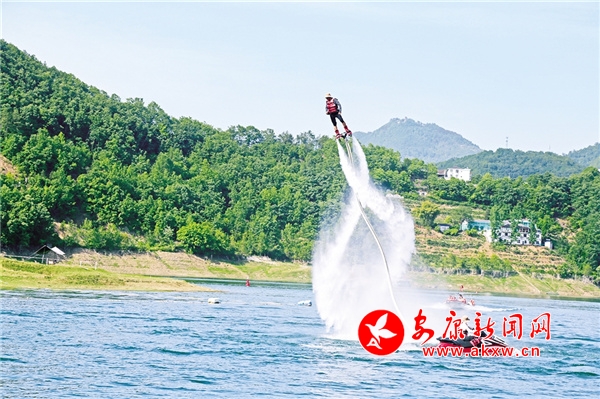 休閑勝地翠屏島,最大的亮點是玉清橋的彩虹瀑布,游客從橋下經過,感受“瀛湖之水天上來”的曼妙,這也是瀛湖為游客送上的初夏第一絲清涼。橋頭幸福的天梯、鳥巢,成為排隊拍照的絕佳點位。運動場上,滾鐵環、射箭、投壺、打籃球,讓游客流連忘返。兒童樂園旁,微型爆米花機勾起了孩子們參與的興趣,彩繪激發了孩子們的繪畫熱情。瀛湖水上嘉年華,精彩刺激的水上項目帶給游客酣暢的體驗,游客紛紛直呼“過癮”!Kr6安康新聞網