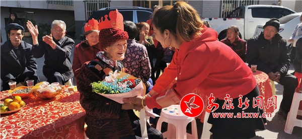 活動上,中心村四支隊伍還為在農(nóng)歷9月1日至9月15日期間過生日的老人送上生日蛋糕、獻上生日祝福歌,為兩位80歲以上老人獻上鮮花,大壩村志愿者朱傳培免費為留守老人理發(fā),每個人都用自己的實際行動踐行著敬老、愛老的傳統(tǒng)美德。汪杜娟說:“像這樣的活動,我們村已經(jīng)連續(xù)兩年在重陽節(jié)開展了,主要是通過各種活動來關(guān)心關(guān)愛老年人,讓他們感受到黨的關(guān)懷和社會的溫暖。”