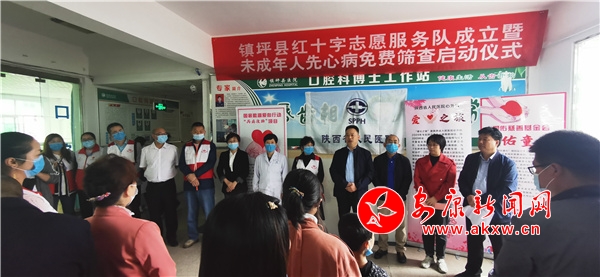 本網訊(通訊員 杜波兒)5月23日,在這充滿希望的美好的初夏季節,省人民醫院免費篩查專家組、市紅十字會領導及工作人員在鎮坪縣醫院舉行鎮坪縣紅十字志愿隊成立暨未成年人先心病免費篩查啟動儀式。ATY安康新聞網