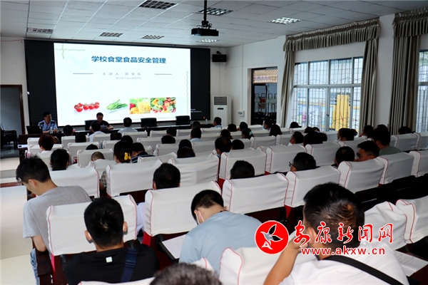 培訓以《學校食堂食品安全管理》為題,從校園食品安全監管形勢、學校食堂日常管理關鍵點控制、采購貯存、加工切配烹制、餐具清洗消毒等方面,為大家進行了深入細致的講解。