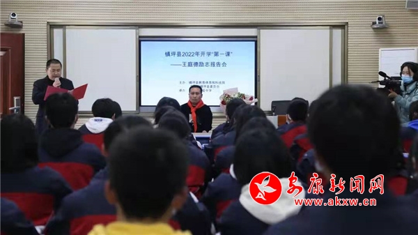 本網訊(通訊員 廖香妮)2月21日中午,由鎮坪縣教育體育和科技局、共青團鎮坪縣委員會主辦,鎮坪縣初級中學承辦的鎮坪縣2022年開學第一課——王庭德勵志報告會在鎮坪縣初級中學五樓會議室舉行,全縣15所中小學校5000多名學生線上收看活動直播,報告會由縣教育體育和科技局黨委書記、局長陸翔主持。