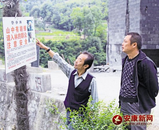 鎮坪縣為有效防控胡蜂傷人事故,加大胡蜂防控宣傳力度,全縣各鎮各村在進入景區、林區的路口和人口密聚區設立警示標志,提醒群眾預防胡蜂。賀孝成 攝……