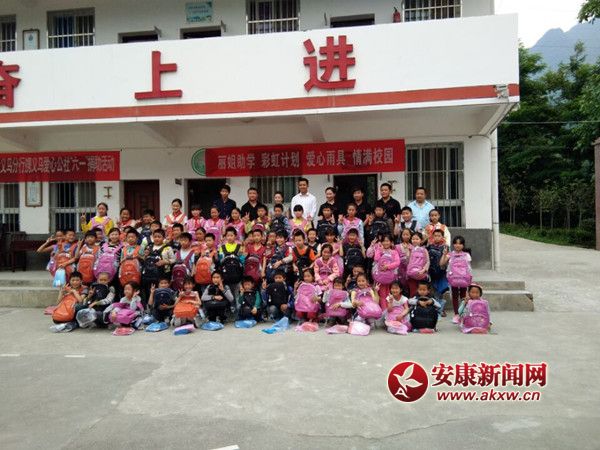 安康新聞網(通訊員 鐘定軍 劉成軍)陽光溫暖,風中飄香。5月31日下午,紫陽縣麗姐助學志愿者攜中國建設銀行義烏分行愛心公社在副縣長張麟的帶領下來到高橋鎮龍潭小學,用行動播撒愛的甘露:麗姐助學及義烏愛心公社為該校63名貧困學生傾注愛心,由麗姐助學為孩子們籌資送來了63套雨具(雨衣、雨鞋及鞋套);義烏愛心公社開展“愛心書包漂流”活動為孩子們買來63個書包,并且每個書包里面都配備有各種文具。孩子們依次伸出一雙雙稚嫩的小手,接過雨具和書包,此時每個孩子的臉上都綻放出快樂的笑容,校園里洋溢著濃濃的愛意。LJr安康新聞網