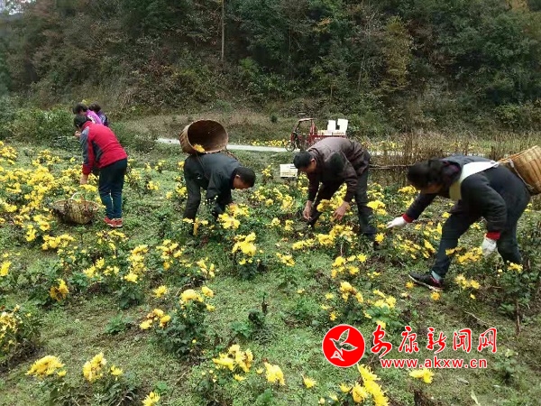 初冬季節,正是金絲黃菊盛開采摘的季節。紫陽縣蒿坪鎮王家河村百畝菊花盛開,成為一道亮麗的風景。也是該村作為鞏固提升脫貧成果,增加農民收入的一項新型產業,為農民穩定增收找到了新的就業門路。(陳道廣 攝)Xi2安康新聞網
