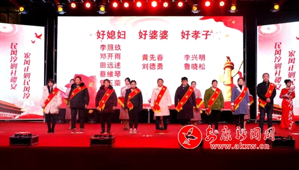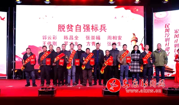 整場活動以“慶元旦暨新民風”為主線,圍繞脫貧攻堅主題,融入先進典型表彰、掃黑除惡宣傳、新民風扶貧扶志等元素,展現了該鎮脫貧攻堅以來發生的喜人變化,整個活動沉浸在喜慶祥和的節日氛圍。表彰會上,對優秀第一書記、優秀共產黨員、脫貧自強標兵、“十星級文明戶”等進行隆重表彰。會前,與會群眾還觀看了《洄水鎮2019年脫貧攻堅專題片》。