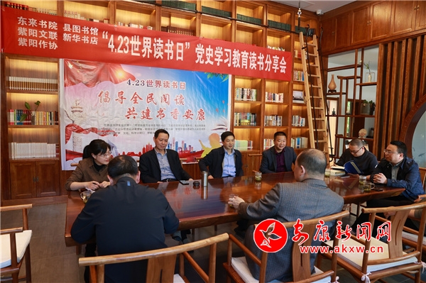 紫陽縣文聯、紫陽東來書院、縣作協等單位在東來書院開展“世界讀書日”黨史學習教育讀書分享會,廣大書友分享了百年黨史的閱讀體會和深切感悟,激發“學百年黨史,守初心情懷”的讀書情懷,營造“以讀書求新知,以讀書強素質、以讀書傳文明、以讀書筑夢想”的全民閱讀氛圍。
