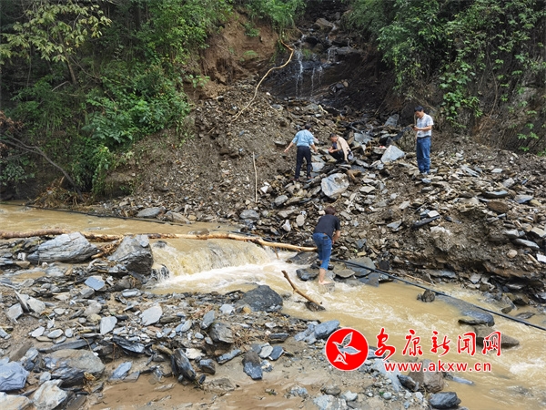 同時,新桃村組織青年黨員、群眾百姓等科學開展生產自救,進行房屋清理、道路搶通、疏通清淤、險情排除等工作。為保障村民正常用水,村委會安排組織運水大軍,修復受損管道,修繕蓄水池;挖土機挖通因嚴重滑坡而造成的受損路段后,群眾自發帶著鋤頭和鏟子,挖出一條簡易小道,方便救災人員通行。
