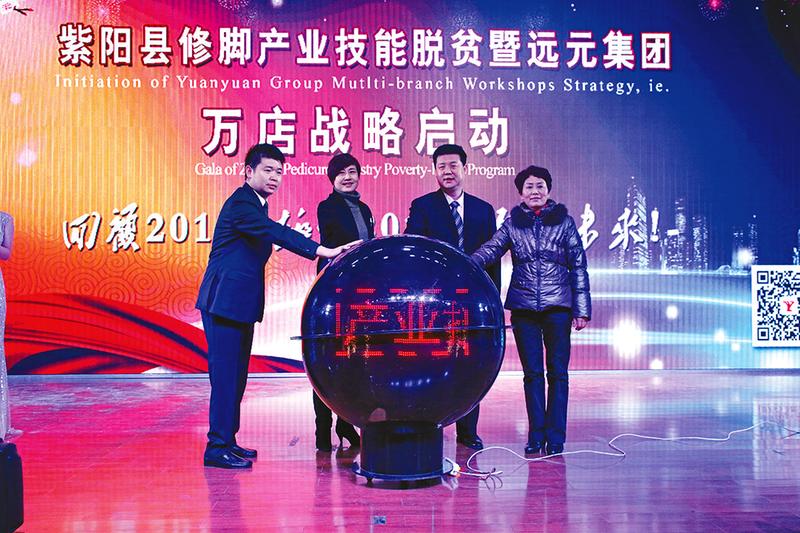 2016年2月2日,紫陽縣發展修腳產業推進技能脫貧動員大會召開,遠元集團萬店戰略啟動。 陳剛攝紫陽縣職教中心成為國內第一個由政府主導的修腳技師培訓基地。 (……