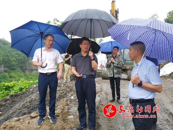 王安中在漢陰縣督導防汛防滑搶險救災工作