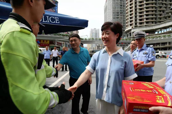 趙璟、張維護看望慰問高溫一線執勤民警