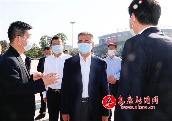 王浩(左三)一行在金州廣場核酸檢測采樣點檢查中心城區重點人群全員核酸檢測開展情況