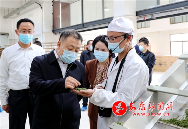 市長武文罡(左二)在長安鎮田珍茶業調研茶葉生產加工情況(攝影:李世鋒)