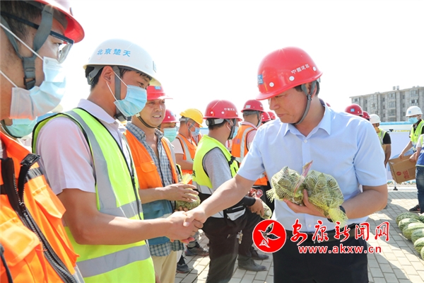 趙俊民要求,工程建設越是進入攻堅沖刺階段,越要統籌兼顧做好各項工作,既突出重點、壓茬推進工程建設,又堅持質量和安全生命線,確保工程質量經得起歷史和人民檢驗。要整合施工力量,強化統籌協調,奮力攻堅克難,形成強大合力。各施工總承包單位要充分發揮主力軍、突擊隊作用,進一步優化細化施工計劃,配強班組技術骨干,上足人力和機械,多點多面開工,加強現場調度和管控,細摳施工細節,保證工程品質。趙俊民還為一線建設者送上防暑降溫物品,勉勵大家在確保自身安全和工程質量的前提下,弘揚不怕困難、只爭朝夕、團結高效的精神,全面加快工程建設進度,確保十四運會場館項目如期建成投用。
