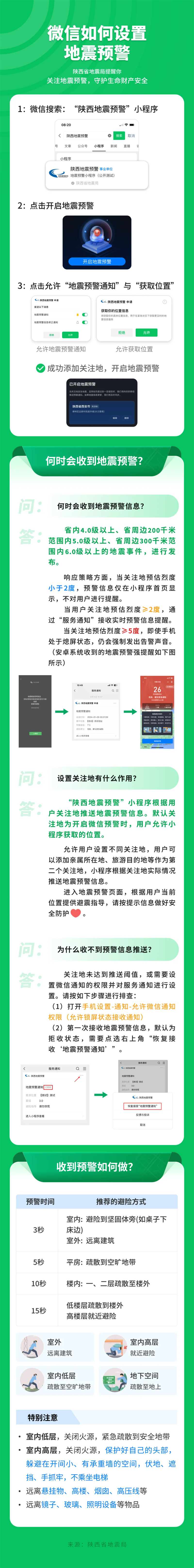 8月6日,記者從陜西省地震局獲悉:隨著國家地震預(yù)警工程的全面建成以及陜西《地震預(yù)警信息發(fā)布規(guī)范》地方標(biāo)準(zhǔn)的實施,“陜西地震預(yù)警”微信小程序已正式上線,可為用戶提供本地地震預(yù)警服務(wù)。省界范圍內(nèi),滿足陜西《地震預(yù)警信息發(fā)布規(guī)范》的地震事件發(fā)生后,該小程序?qū)⒃?0秒內(nèi)向用戶發(fā)布地震預(yù)警信息,最大并發(fā)量可達每秒200萬用戶,將有效降低地震災(zāi)害造成的人民群眾生命財產(chǎn)損失。