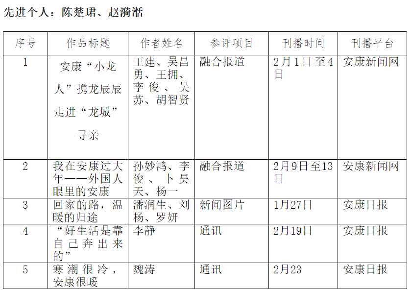 安康日報(bào)社擬參評2024年“新春走基層”先進(jìn)個(gè)人及新聞作品公示